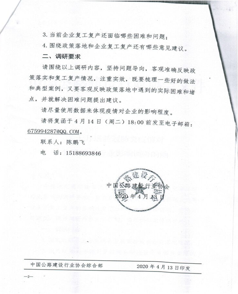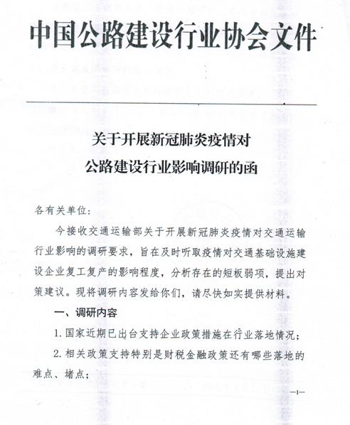 為深入貫徹習(xí)近平總書(shū)記關(guān)于堅(jiān)持在常態(tài)化疫情防控中加快推進(jìn)生產(chǎn)生活秩序全面恢復(fù)的重要指示精神,落實(shí)《國(guó)務(wù)院應(yīng)對(duì)新型冠狀病毒感染肺炎疫情聯(lián)防聯(lián)控機(jī)制關(guān)于做好新冠肺炎疫情常態(tài)化防控工作的指導(dǎo)意見(jiàn)》(國(guó)發(fā)明電〔2020〕14號(hào))和《交通運(yùn)輸部關(guān)于做好交通運(yùn)輸行業(yè)新冠肺炎疫情常態(tài)化防控工作的指導(dǎo)意見(jiàn)》(交應(yīng)急明電〔2020〕164號(hào)),統(tǒng)籌做好公路建設(shè)。中國(guó)公路建設(shè)行業(yè)協(xié)會(huì)開(kāi)展新冠肺炎疫情對(duì)公路建設(shè)行業(yè)影響的調(diào)研,旨在及時(shí)聽(tīng)取疫情對(duì)交通基礎(chǔ)設(shè)施建設(shè)企業(yè)復(fù)工復(fù)產(chǎn)的影響程度,分析存在的短板弱項(xiàng),提出對(duì)策建議。