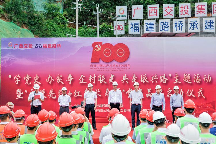 5月8日,福建路橋天巴高速№3合同段拾貳坡隧道現(xiàn)場(chǎng)黨旗飄揚(yáng),天巴路指揮部全體黨員干部、各總監(jiān)辦、各項(xiàng)目經(jīng)理部及鳳山縣長(zhǎng)洲鎮(zhèn)機(jī)關(guān)黨支部、東蘭縣金谷鄉(xiāng)納立村黨支部共同參加了“學(xué)黨史 辦實(shí)事 企村聯(lián)建 共走振興路”主題活動(dòng)暨“交投先鋒+紅色長(zhǎng)壽行”黨建品牌啟動(dòng)儀式,正式開啟村企聯(lián)建促發(fā)展的序幕。 |