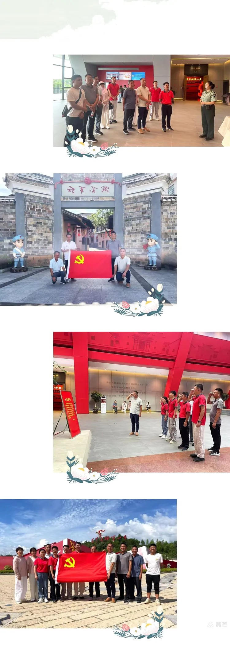 活動(dòng)當(dāng)天,黨員同志們懷著崇敬的心情參觀了紅軍長征出發(fā)地紀(jì)念館、陳塘紅軍醫(yī)院舊址、鳳山列寧小學(xué)、紅軍街等革命勝跡,認(rèn)真聆聽革命先輩們?cè)⊙獖^戰(zhàn)的感人事跡,駐足凝視歷史遺物,深刻感悟紅軍長征精神的內(nèi)涵與力量。在宣誓墻前,全體黨員整齊列隊(duì),舉起右拳,在黨支部副書記許時(shí)濤的帶領(lǐng)下,重溫入黨誓詞。