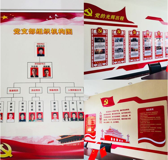 該支部還專門設(shè)立了黨支部活動(dòng)室。活動(dòng)室實(shí)行“一旗(黨旗)一誓詞(入黨誓言)兩制度(支部工作職責(zé)、學(xué)習(xí)計(jì)劃)”上墻,配備桌椅、投影儀、電腦、書櫥等硬件設(shè)施,學(xué)習(xí)紀(jì)錄、活動(dòng)安排等記載詳細(xì)并及時(shí)公開,為一線黨員創(chuàng)造了良好的學(xué)習(xí)條件。進(jìn)一步提升項(xiàng)目部黨員黨性修養(yǎng),夯強(qiáng)了黨建基礎(chǔ)工作,充分發(fā)揮了黨組織的戰(zhàn)斗堡壘作用。讓黨員活動(dòng)室成為黨性鍛煉之“爐”、凝聚人心之“橋”、展示作為之“窗”,是項(xiàng)目部加強(qiáng)黨建工作的又一重要舉措。